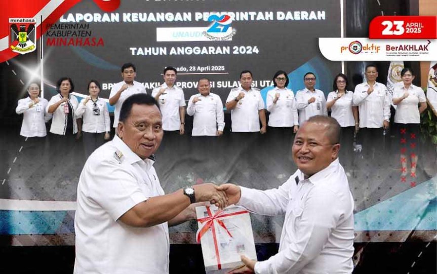 Laporan tersebut secara resmi diserahkan langsung oleh Bupati Minahasa Robby Dondokambey SSi, MAP, kepada Kepala BPK RI Perwakilan Provinsi Sulawesi Utara, Bombit Agus Mulyono, S.E., M.M., Ak., CA., ERMAP., GRUP., GRCA., CSFA., bertempat di Gedung BPK Perwakilan Sulawesi Utara, Rabu (23/4/2025).