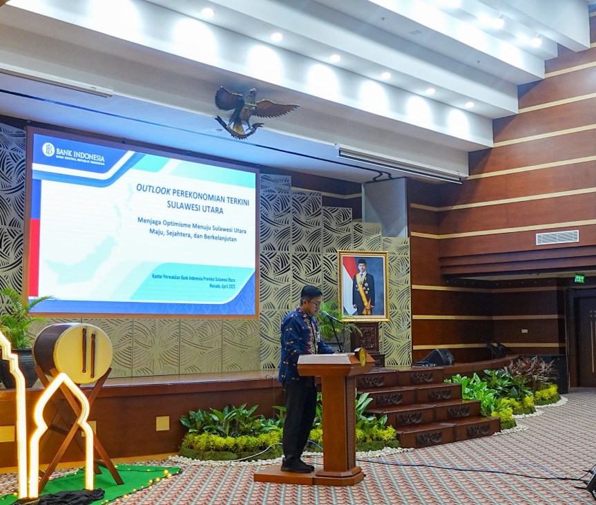 Kepala Perwakilan Bank Indonesia Provinsi Sulut Andry Prasmuko menyampaikan kondisi perekonomian global, nasional dan Sulut, yang dilanjutkan dengan outlook pertumbuhan ekonomi dan inflasi tahun 2025 dan 2026, menyebut dari Sisi pertumbuhan ekonomi, pada tahun 2024 Sulut (5,39%, yoy) tumbuh lebih tinggi dibandingkan Nasional (5,03%, yoy).