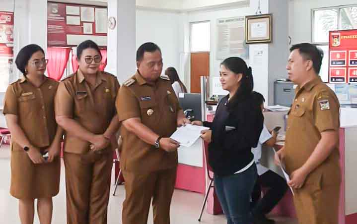 MANADOPOST.ID–Bupati Robby Dondokambey SSi MAP (RD) melakukan inspeksi mendadak (sidak) ke kator Dinas Kependudukan dan Pencatatan Sipil (Disdukcapil), Selasa (29/4/2025).