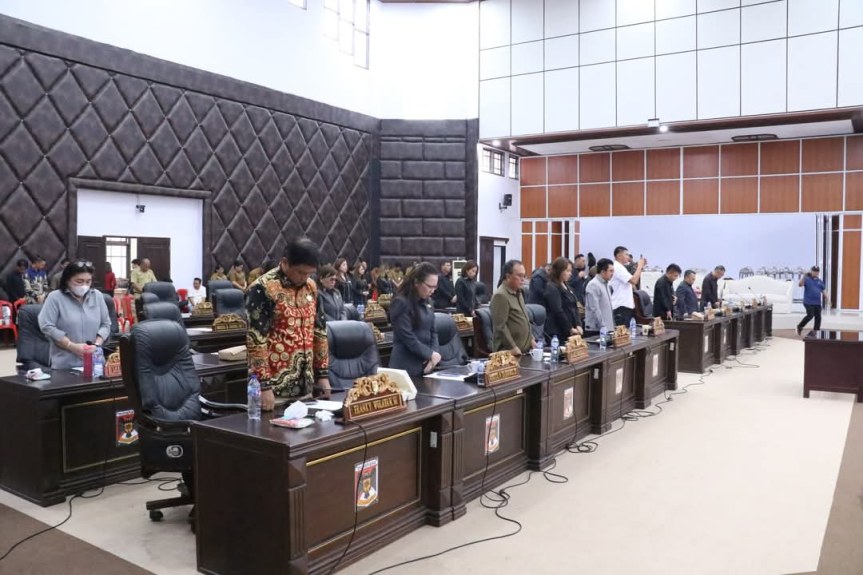 Paripurna ini dipimpin Ketua DPRD Drs Robby Longkutoy MM, didampingi Wakil Ketua l Putri Pontororing SE, Wakil Ketua ll Adrie Kamasi SH MH, dan Sekretaris Dewan Dra Riany Suwarno, serta dihadiri para anggota dewan.