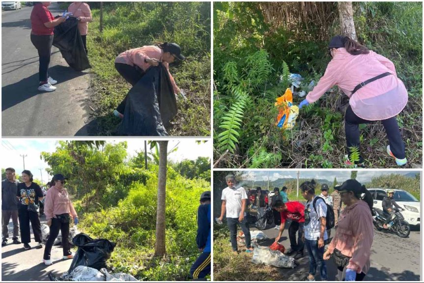 Tondano – Ketua TP PKK Minahasa, Ny. Martina Dondokambey Lengkong, SE bersama jajaran ikut serta dalam kegiatan kerja bakti Pemerintah Kabupaten Minahasa di seputaran jalan Benteng Moraya sampai sampai di kelurahan Tonsaru ( Karede’ian) dan Jalan Bolevard Tondano, Jumat (9 Mei 2025).