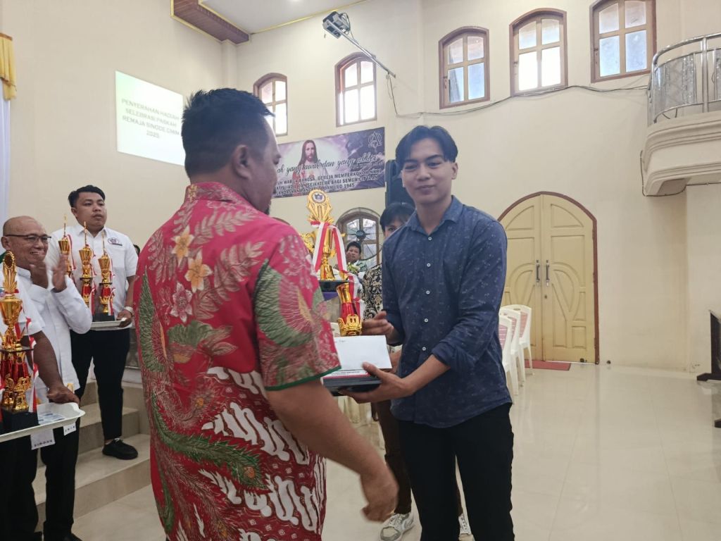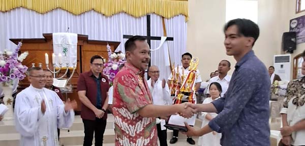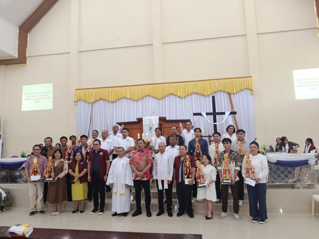 SULUTNEWSTV.com, MANADO – Wakil Wali Kota Manado Penatua dr Richard Sualang menyerahkan hadiah kepada pemenang didalam giat Selebrasi Paskah Remaja GMIM 2025, beberapa waktu lalu. Penyerahan Hadiah Selebrasi Paskah Remaja Sinode GMIM tahun 2025 dilaksanakan di GMIM Firdaus Tumumpa wilayah Manado Utara III, Minggu (11/5/2025). Ibadah Minggu dipimpin oleh Pdt Tommy Waken, M.Th, selaku Ketua BPMW Manado Utara III.