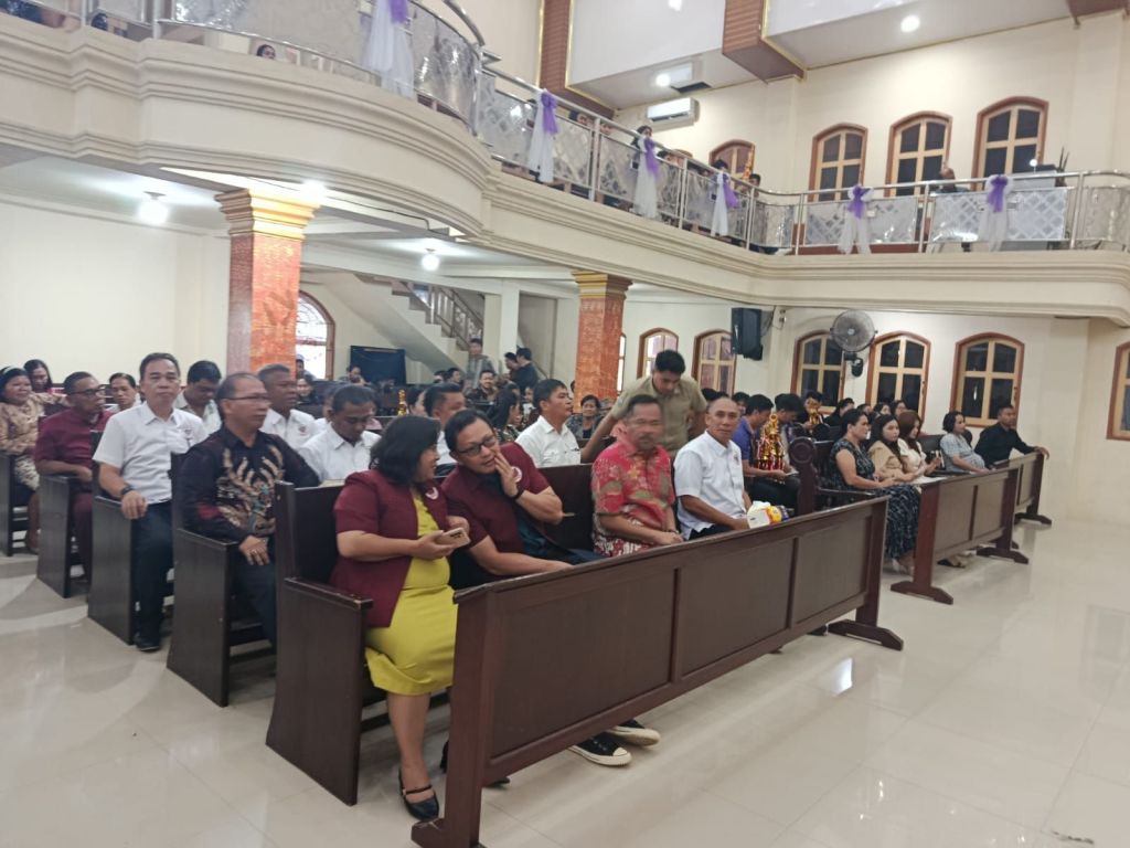 Ikut hadir dalam ibadah Camat Tuminting Hence Patimbano, serta unsur jajaran panitia Pnt Steven Rondonuwu, Pnt Feris Paulus, Pnt Frans Kansil, Pnt Deky Foke, Pnt Via Bangsuil dan Janny Ohy.(*/gabby)