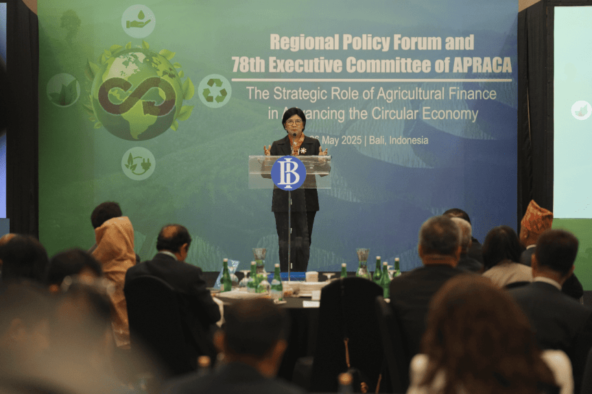 Sejalan dengan hal itu, Chairman Agricultural Development Bank of China (ADBC) yang saat ini menjabat Chairman APRACA, Mr. Qian Wenhui menyampaikan tiga makna strategis dari ekonomi sirkular di sektor pertanian. Pertama, ekonomi sirkular dapat mengatasi keterbatasan sumber daya alam melalui penerapan model sistem tertutup yang mengubah limbah menjadi sumber daya yang bernilai tambah, selain mengurangi tekanan terhadap lingkungan dan dampak ekologi. Kedua, pendekatan ini mendukung ketahanan pangan melalui penerapan praktik pertanian berkelanjutan, seperti substitusi pestisida kimia dengan alternatif ramah lingkungan serta penerapan sistem tumpangsari. Ketiga, ekonomi sirkular berkontribusi terhadap pencapaian target iklim, baik dalam konteks emisi karbon maupun netralitas karbon, antara lain melalui pemanfaatan kembali limbah pertanian, penggunaan biogas, pengurangan emisi gas rumah kaca, serta perlindungan terhadap keanekaragaman hayati.