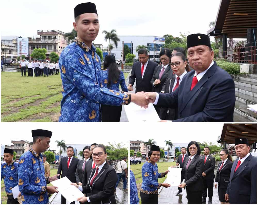Pada kesempatan yang sama, Bupati Robby Dondokambey juga menyerahkan Surat Keputusan (SK) Calon Pegawai Negeri Sipil (CPNS) kepada para penerima.
