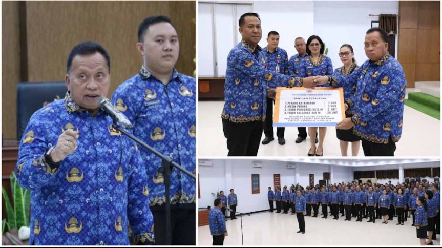 Minahasa –Bupati Minahasa, Robby Dondokambey, SSi, MAP, bertindak sebagai pembina dalam Apel Korpri yang berlangsung di Ruang Sidang Kantor Bupati Minahasa, Selasa (17/6/2025).