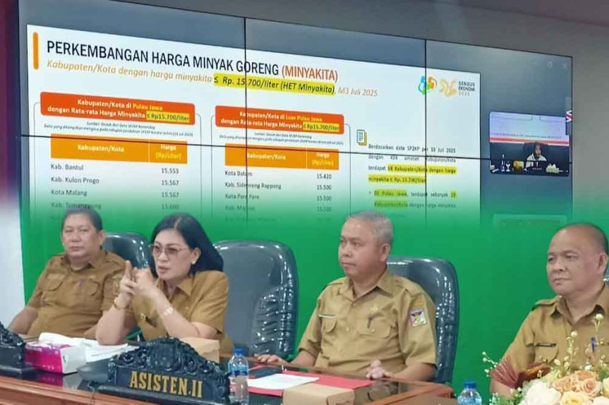 Tondano – Sekretaris Daerah Kabupaten Minahasa, Dr. Lynda D. Watania, MM, M.Si, mengikuti Rapat Koordinasi (Rakor) Pengendalian Inflasi yang dirangkaikan dengan Pembahasan Evaluasi Dukungan Pemerintah Daerah dalam Program 3 Juta Rumah. Kegiatan ini dilaksanakan secara virtual dari Ruang Command Center Kantor Bupati Minahasa, Selasa (22/7/2025).
