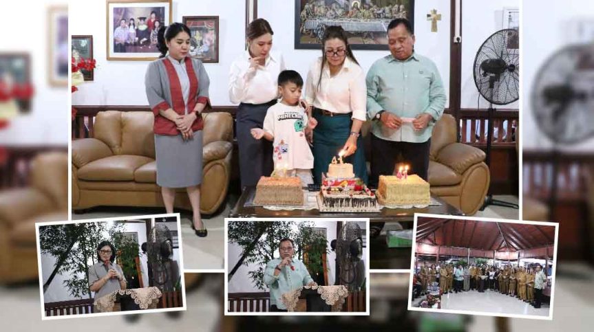 Minahasa – Suasana penuh sukacita dan syukur mewarnai kediaman pribadi keluarga Bupati Minahasa Robby Dondokambey SSi MAP dan Ketua TP PKK Martina Watok Dondokambey-Lengkong SE di Desa Sawangan, Kecamatan Tombulu, Senin (4/8/2025).