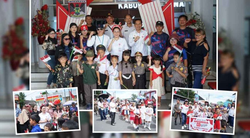 MINAHASA – Ribuan bocah dari berbagai TK dan SD (PAUD) di Tondano Raya mengkuti kegiatan Pawai dalam rangka menyemarakan HUT ke 80 Kemerdekaan RI.