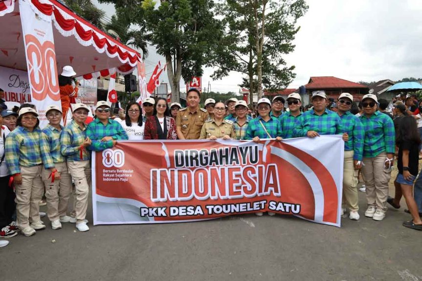 Minahasa – Dalam rangka memeriahkan Hari Ulang Tahun (HUT) ke-80 Republik Indonesia, Wakil Bupati Minahasa, Vanda Sarundajang, SS, menghadiri sekaligus menyaksikan pelaksanaan Pawai Pembangunan di Kecamatan Sonder, Selasa (19/8/25).