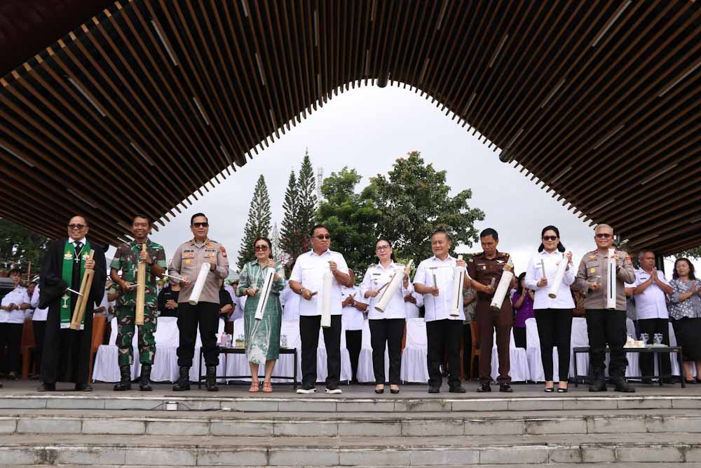 Acara ini dihadiri oleh seluruh jajaran pimpinan daerah, termasuk Bupati Robby Dondokambey, Ketua TP PKK Minahasa Martina Dondokambey-Lengkong, Wakil Bupati Vanda Sarundajang, Sekda Minahasa Lynda D Watania, dan jajaran, serta perwakilan dari Forum Komunikasi Pimpinan Daerah (Forkopimda) dan Forum Kerukunan Umat Beragama (FKUB). (Advetorial)