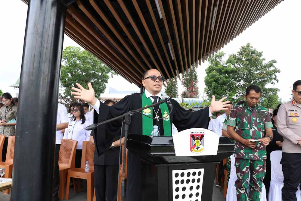Ibadah dipimpin Pdt. Dr. Adolf Wenas M.Th., yang dalam khotbahnya berpesan agar Minahasa menjadi pilar penjaga perdamaian.