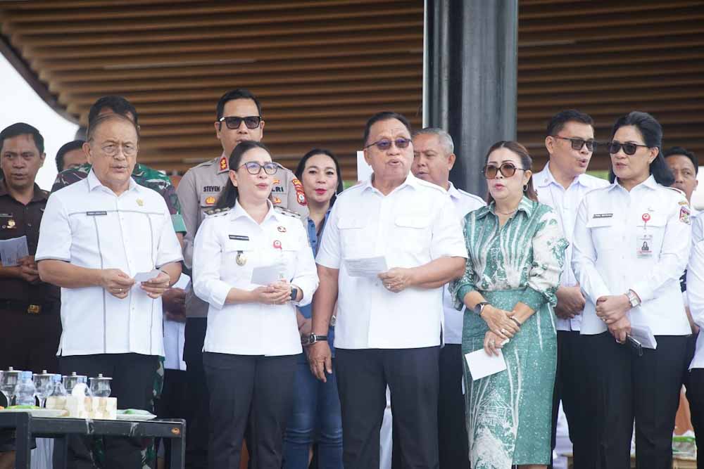 Secara simbolis, Bupati Robby Dondokambey, Wakil Bupati Vanda Sarundajang, Sekda, dan Forkopimda, memukul alat musik tradisional Minahasa, tetengkoren, mengajak seluruh masyarakat terlibat aktif menjaga kebersihan lingkungan.