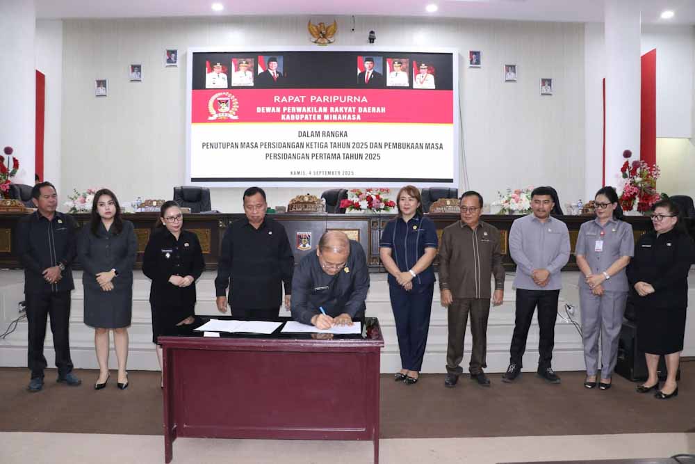 Minahasa – Dewan Perwakilan Rakyat Daerah (DPRD) Kabupaten Minahasa menggelar rapat paripurna yang menandai penutupan Masa Persidangan Ketiga Tahun 2025 dan pembukaan Masa Persidangan Pertama Tahun 2025.