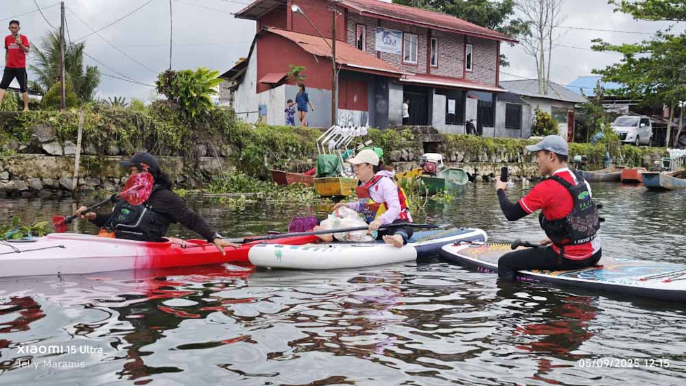 Sepanjang perjalanan, para peserta tidak hanya menikmati keindahan alam, tetapi juga memungut sampah plastik di beberapa titik di sepanjang DAS Tondano.