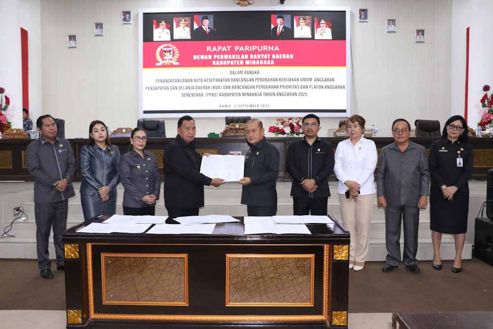 Minahasa – Dewan Perwakilan Rakyat Daerah (DPRD) Kabupaten Minahasa, menyetujui Rancangan Perubahan Kebijakan Umum Anggaran (KUA) serta Rancangan Perubahan Prioritas dan Plafon Anggaran Sementara (PPAS) Pemerintah Kabupaten (Pemkab) Minahasa Tahun Anggaran 2025.