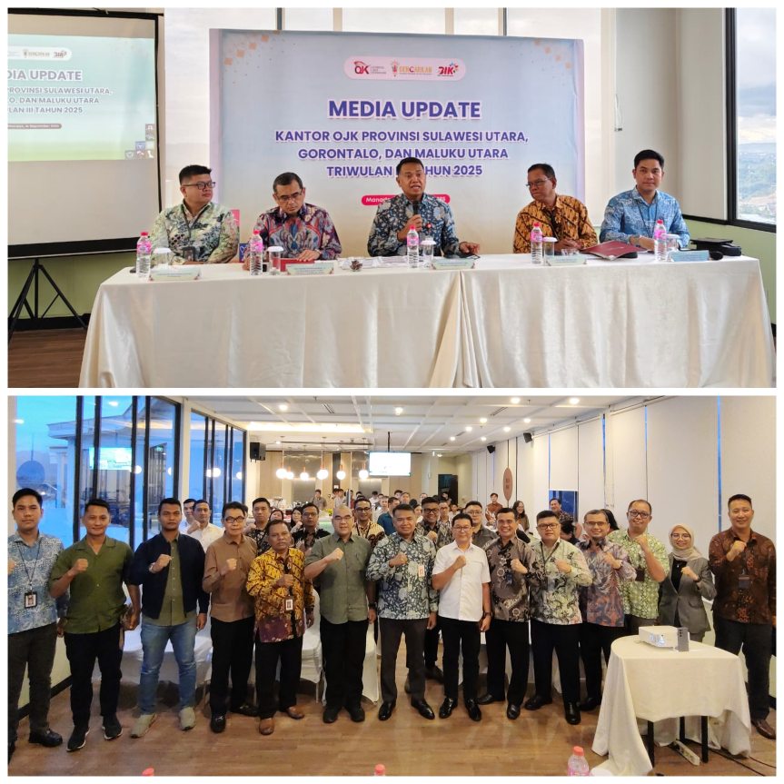 SULUTNEWSTV.com, MANADO – Kinerja Industri Jasa Keuangan di wilayah kerja Otoritas Jasa Keuangan (OJK) Sulawesi Utara, Gorontalo dan Maluku Utara per Juni 2025, tercatat mengalami pertumbuhan yang stabil dan sehat. Hal itu disampaikan Kepala KaOJK SulutGoMalut Robert H.P Sianipar saat media Update kantor OJK Sulutgomalut, didampingi Kepala Divisi Pengawasan PEPK Keuangan Daerah, dan Layanan Manajemen Strategis Budiman P. Siahaan, Asisten Direktur Senior Pengawasan LJK Graha Anggar Perbawa dan Kepala Departemen Bisnis dan Support PT Pegadaian Fanny Walandauw, yang digelar disalah satu hotel di Kota Manado, Selasa(16/9/2025).