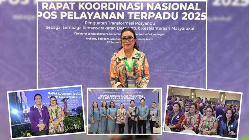 Minahasa – Ketua Tim Pembina (TP) Posyandu Kabupaten Minahasa Martina W Dondokambey Lengkong SE (MWL) menghadiri Rapat Koordinasi Nasional (Rakornas) Pos Pelayanan Terpadu (Posyandu) Tahun 2025 yang dilaksanakan di Mercure Convention Center Ancol, Jakarta, Senin (22/9/2025).