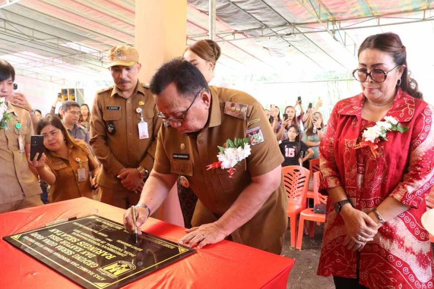 Dalam sambutannya, Bupati Robby Dondokambey menyampaikan apresiasi tinggi kepada seluruh pihak yang telah bekerja keras dalam pembangunan gedung ini.