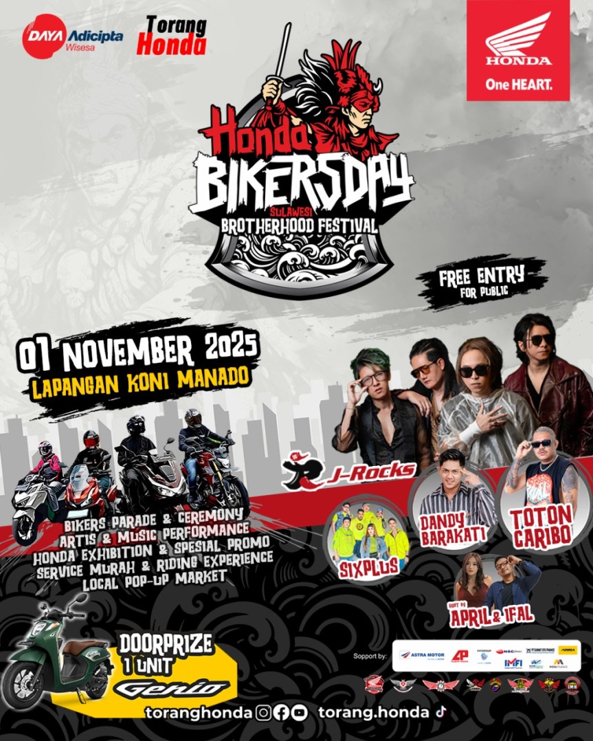 “Honda Bikers Day bukan hanya acara kumpul, tetapi ruang untuk meneguhkan rasa bangga sebagai bagian dari keluarga besar Honda. Kami percaya semangat positif dari para bikers akan membawa energi baru bagi komunitas di Sulawesi. Karena itu, kami mengajak seluruh bikers dan masyarakat di Sulawesi untuk hadir dan merasakan langsung euforia Honda Bikers Day Regional Sulawesi 2025,” ujar Bonny Pandelaki, Promotion Dept. Head PT. Daya Adicipta Wisesa.
