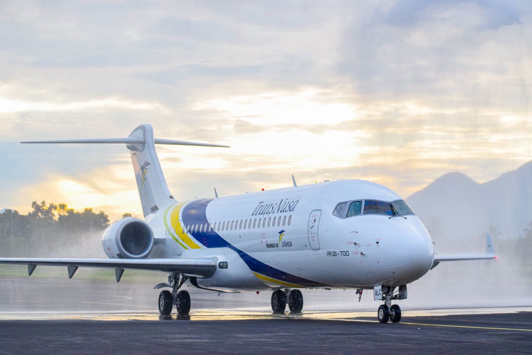 Penerbangan perdana oleh Pesawat Transnusa jenis Comac C909 yang terbang dari Schenzhen menuju Bandara Sam Ratulangi (Samrat) Manado, dimulai pada Jumat (3/10/2025).