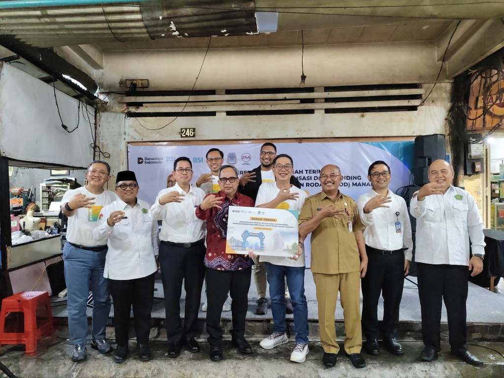 Turut hadir Area Manager BSI Manado Syarief Hidayat dan jajaran BSI Manado, Kakanwil Kemenag Sulut Ulyas Taha, Deputi Direktur Bidang Pengawasan LJK OJK Sulutgomalut Irawan Muzhar, Asisten Deputi Bank Indonesia Sulut I Made Donny Irawan, Direktur Utama Perumda Pasar Manado Lucky Senduk, Direktur Umum Perumda Pasar Manado Irving Miki dan seluruh jajaran Perumda Pasar Manado.(*/gabby)