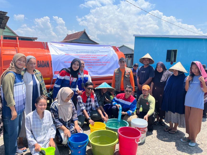 SULUTNEWSTV.com, MAROS – Kekeringan berkepanjangan yang melanda Kabupaten Maros sejak awal tahun 2025 telah menyulitkan masyarakat di sejumlah wilayah untuk memperoleh air bersih. Menjawab kebutuhan mendesak ini, Pertamina Patra Niaga Regional Sulawesi melalui Aviation Fuel Terminal (AFT) Hasanuddin bergerak cepat bersama Badan Penanggulangan Bencana Daerah (BPBD) Maros menyalurkan bantuan air bersih bagi warga terdampak.