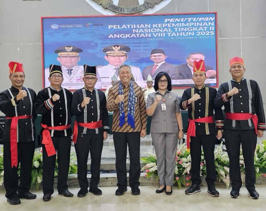 Sulut – Sekretaris Daerah Kabupaten Minahasa, Dr. Lynda D. Watania, MM, M.Si, menghadiri kegiatan Penutupan Pelatihan Kepemimpinan Nasional (PKN) Tingkat II Angkatan VIII Tahun 2025 yang berlangsung di Aula Mapalus, Kantor Gubernur Sulawesi Utara, Selasa (14/10/2025).
