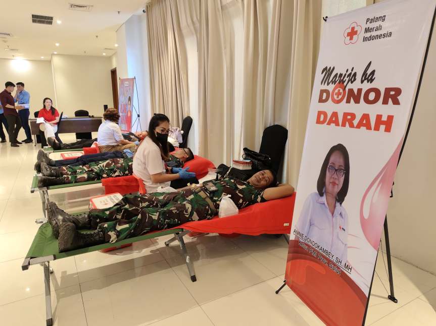Kegiatan donor darah ini turut dihadiri oleh Ketua PMI Kota Manado, Ibu Irene Angouw-Pinontoan, yang sekaligus melakukan kunjungan langsung ke lokasi kegiatan.