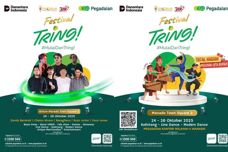 Masyarakat Manado dan sekitarnya diundang untuk hadir langsung di Atrium Manado Town Square 3 dan merasakan keseruan sekaligus manfaat dariTring! — inovasi terbaru dari Pegadaian untuk layanan keuangan yang lebih mudah, cepat, dan modern.