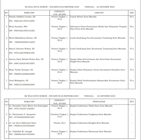 Ia menambahkan, rotasi dan promosi jabatan di lingkungan Pemkot Manado dilakukan dengan mempertimbangkan aspek kompetensi, profesionalisme, serta integritas para pejabat.