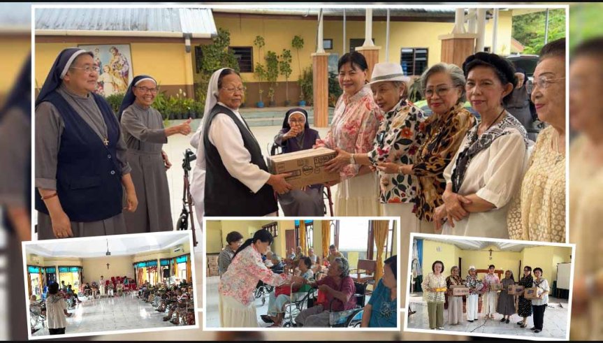 Minut – Semangat berbagi kasih ditunjukkan oleh Ibu Mieke Renaud Tumurang dalam kegiatan bakti sosial di Panti Sosial Tresna Werdha Bethania Paslaten dan Biara Santa Ana Lembean, Minahasa Utara (Minut), pada Kamis (20/10/2025).