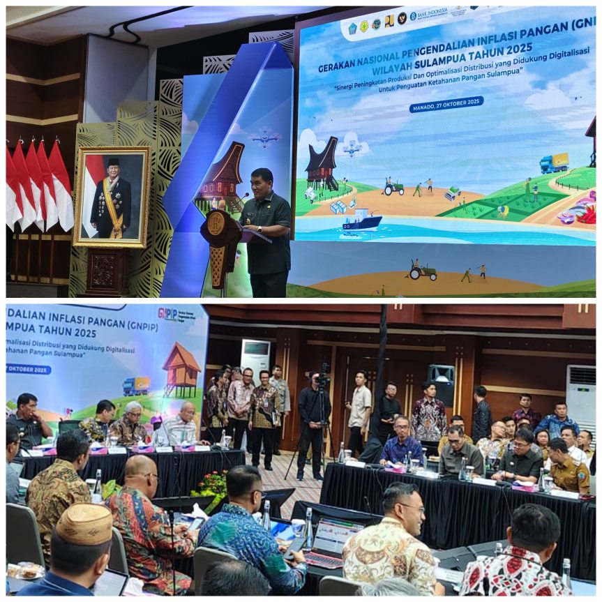 SULUTNEWSTV. com, MANADO – Wali Kota Manado Andrei Angouw menghadiri kegiatan Gerakan Nasional Pengendalian Inflasi Pangan (GNPIP) wilayah Sulawesi, Maluku, dan Papua (Sulampua) tahun 2025, dengan tema ‘Sinergi Peningkatan Produksi dan Optimalisasi Distribusi yang Didukung Digitalisasi untuk Penguatan Ketahanan Pangan Sulampua’ yang dilaksanakan di Kantor Perwakilan BI Sulut, Senin(26/10/2025).