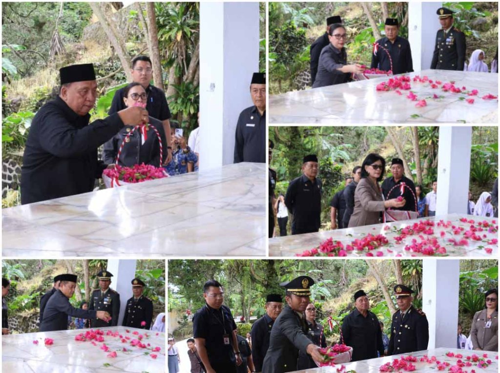 Usai upacara, Bupati bersama Forkopimda dan jajaran melanjutkan kegiatan dengan ziarah dan tabur bunga di makam Pahlawan Nasional Dr. G.S.S.J. Ratulangi, Tondano, sebagai komitmen Pemkab meneruskan nilai kepahlawanan melalui pengabdian tulus.