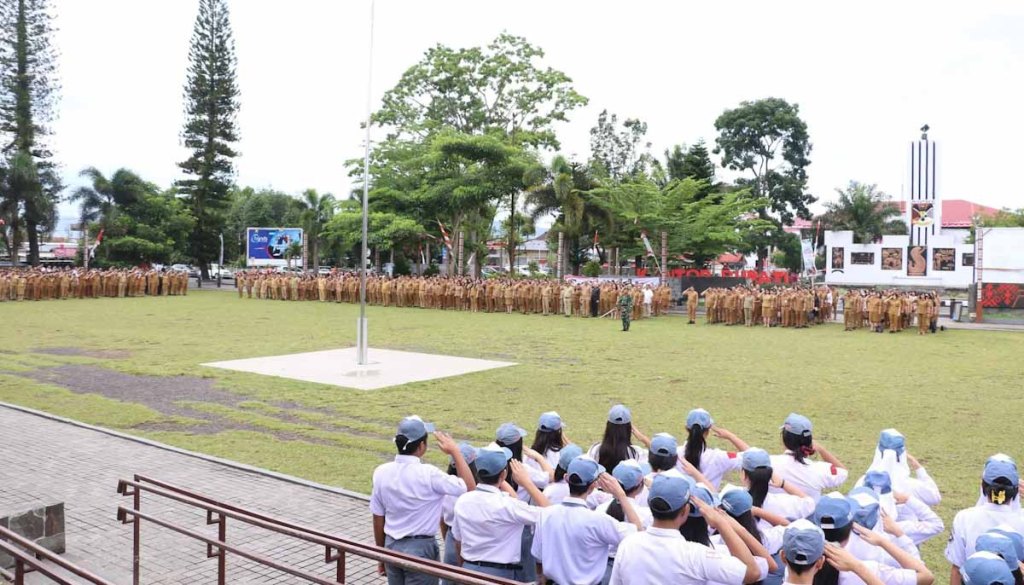 Upacara yang berlangsung khidmat dipimpin oleh Komandan Kodim 1302/Minahasa Letkol Inf Bonaventura Ageng F.S. sebagai Inspektur Upacara (Irup). Turut diikuti Sekretaris Daerah Dr. Lynda D. Watania, serta seluruh ASN dan THL Pemkab Minahasa.