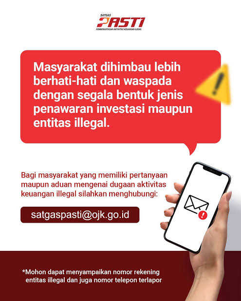 SULUTNEWSTV.com, JAKARTA – Sekretariat Satuan Tugas Pemberantasan Aktivitas Keuangan Ilegal, Hudiyanto mengatakan satuan Tugas Pemberantasan Aktivitas Keuangan Ilegal (Satgas PASTI) mengimbau masyarakat untuk mewaspadai modus penipuan memanfaatkan Artificial Intelligence (AI) yang marak terjadi dan menimbulkan kerugian.