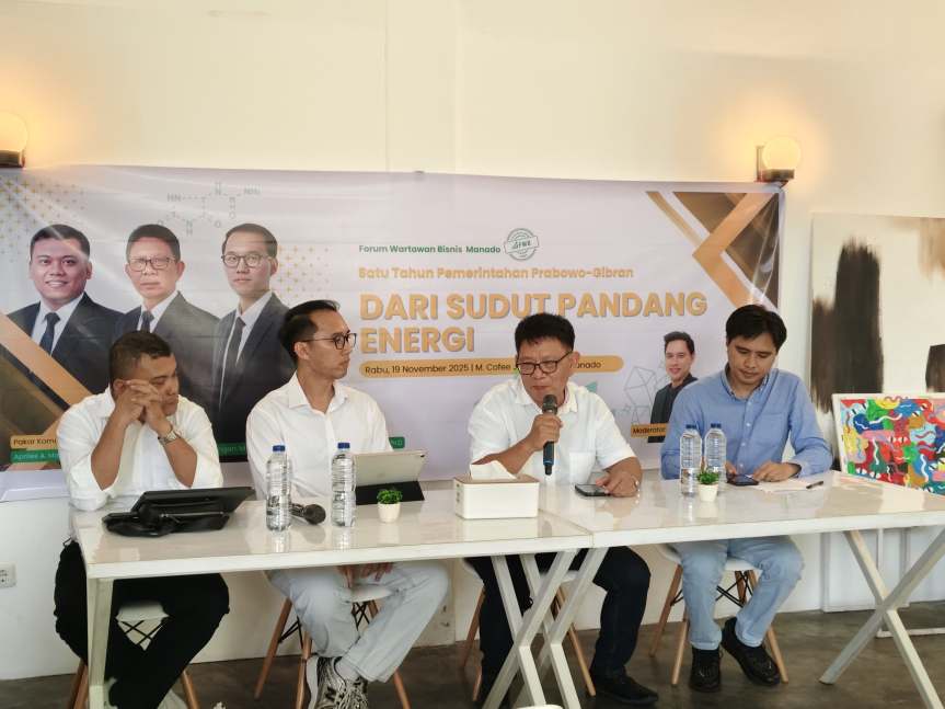 SULUTNEWSTV.com, MANADO – Sejumlah pakar ekonomi, energi, dan kebijakan publik menyoroti arah pembangunan energi nasional dalam Diskusi Kebijakan Publik Energi bertema “Satu Tahun Pemerintahan Prabowo–Gibran dari Sudut Pandang Energi” yang digelar Rabu (19/11/2025) di M Coffee, Jl. Sion No.24 Manado.