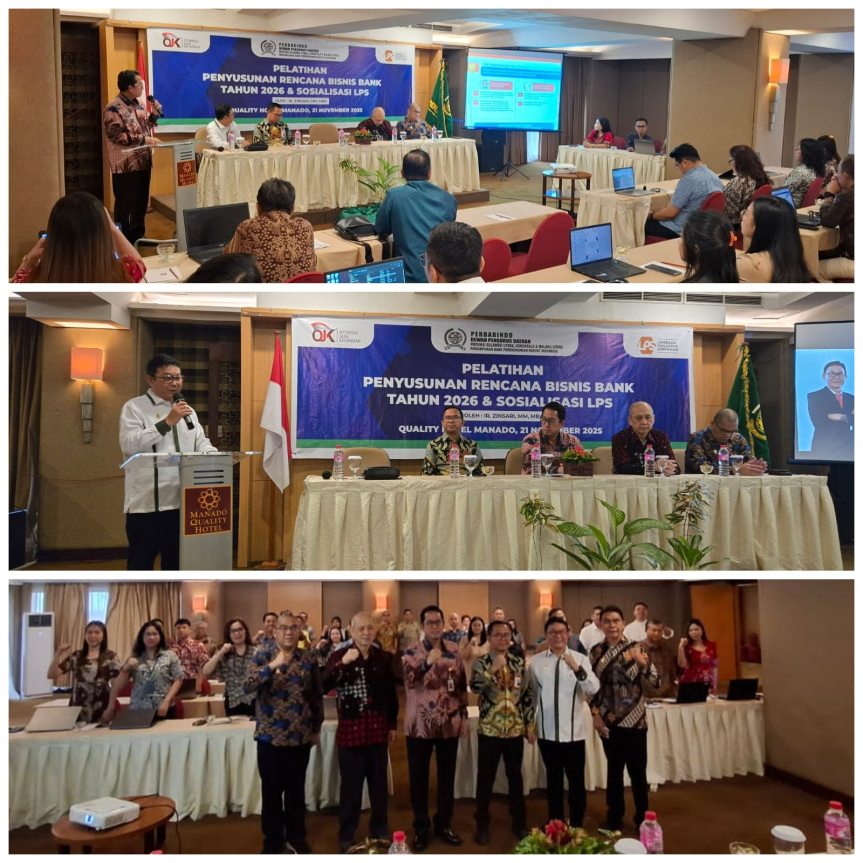 SULUTNEWSTV.com, MANADO – Dewan Pengurus Daerah (DPD) Perhimpunan Bank Perekonomian Rakyat Indonesia (Perbarindo) Sulawesi Utara, Gorontalo, dan Maluku Utara menggelar Pelatihan Penyusunan Rencana Bisnis Bank (RBB) Tahun 2026 dan Sosialisasi Lembaga Penjamin Simpanan (LPS) di Quality Hotel Manado, Jumat (21/11/2025).