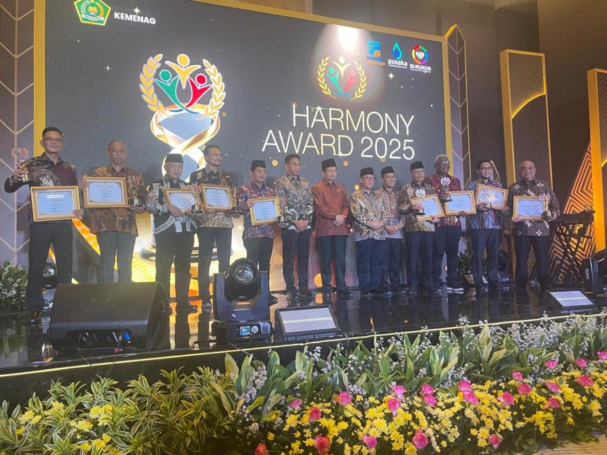 Acara Harmony Award 2025 ditutup dengan penyerahan penghargaan kepada seluruh pejabat serta tokoh yang dinilai aktif berkontribusi dalam menjaga keharmonisan masyarakat di daerah masing – masing.(*/gabby)