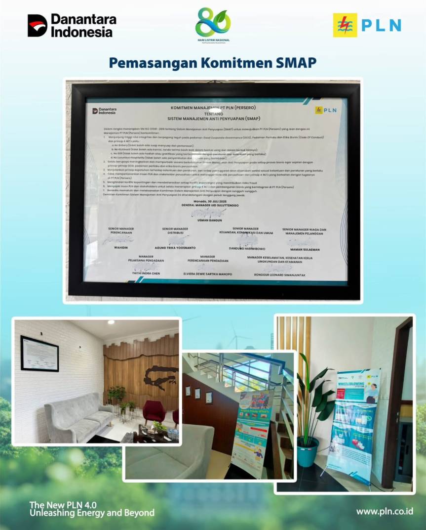 Manado — PT PLN (Persero) Unit Induk Distribusi Sulawesi Utara, Tengah, dan Gorontalo (UID Suluttenggo) terus menunjukkan konsistensi dalam menciptakan lingkungan kerja yang bersih, beretika, dan bebas dari praktik penyuapan melalui penguatan Sistem Manajemen Anti Penyuapan (SMAP).