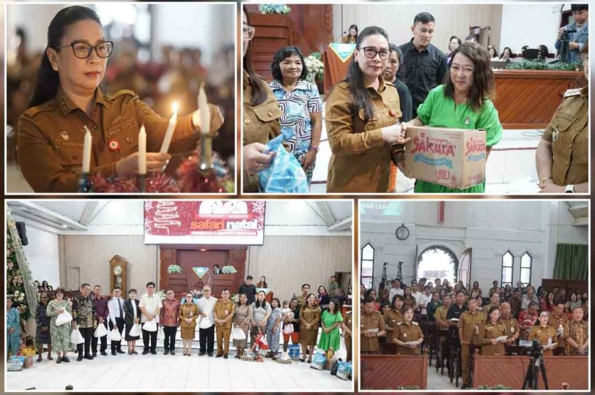 Minahasa – Pemerintah Kabupaten (Pemkab) Minahasa melanjutkan kegiatan Safari Natal di Kecamatan Kawangkoan Raya, Langowan Raya, Tompaso Raya dan Sonder, yang dipusatkan di Gereja KGPM Sentrum Kawangkoan, Selasa (02/12) pagi.