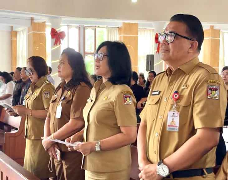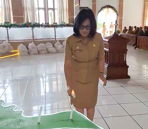 Saat menyampaikan pesan Natal Bupati Minahasa, Sekda Lynda Watania menegaskan bahwa Natal adalah momen sukacita iman yang membawa pesan damai dan kasih bagi seluruh umat manusia.
