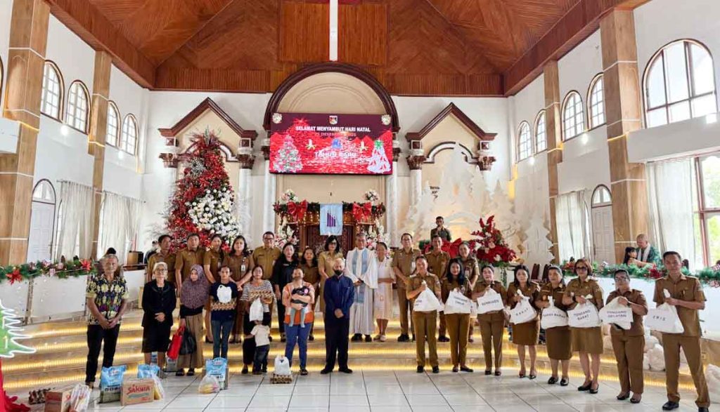 Safari Natal ini juga dirangkaikan dengan penyerahan bantuan sosial kepada masyarakat lanjut usia, warga kurang mampu, serta bantuan bagi keluarga berisiko stunting.