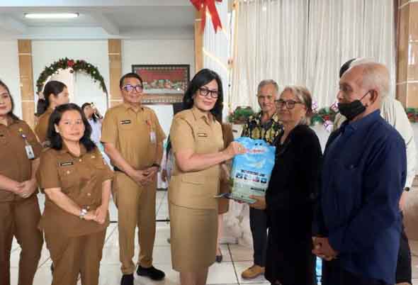 Dalam safari Natal ini, Pemkab Minahasa menyalurkan bantuan sosial berupa bahan pokok kepada orang tua lanjut usia dan warga yang kurang mampu. (*Advetorial)