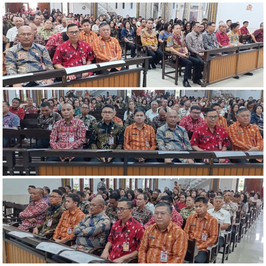SULUTNEWSTV.com, MANADO – Pemerintah Kota Manado melaksanakan Ibadah Natal yang digelar di Gereja GMIM Sola Gratia Tikala, Rabu (4/12). Ibadah tersebut dihadiri seluruh pejabat eselon 2, 3, dan 4 Pemkot Manado, serta organisasi keagamaan seperti FKUB dan BKSAUA.