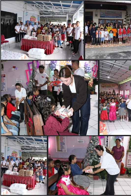 Pada kesempatan tersebut, Sarah Dondokambey yang juga merupakan putri tercinta dari Bupati Minahasa Robby Dondokambey—bersama Ny. Martina Dondokambey-Lengkong memberikan bantuan makanan dan paket sembako kepada anak-anak di tiap panti asuhan. Kehadiran keduanya disambut penuh sukacita oleh para pengurus dan anak-anak panti.