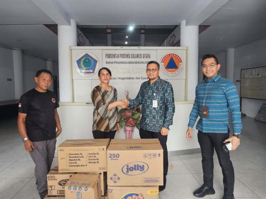 Bantuan tersebut disalurkan melalui Posko BPBD Sulawesi Utara dan diterima langsung oleh perwakilan BPBD Sulut, Angel Lengkong.