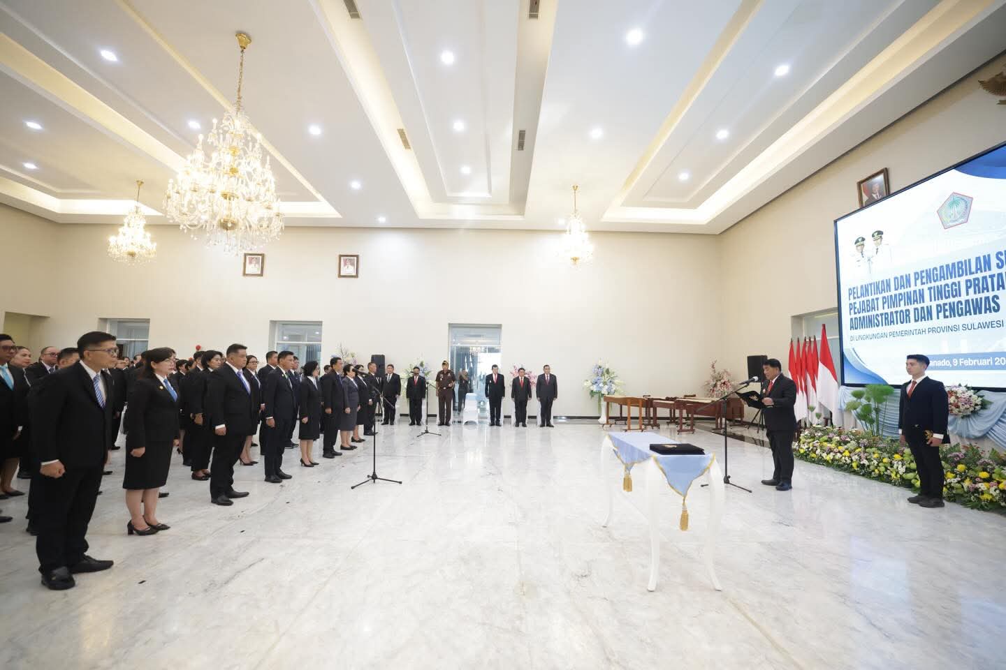 Pelantikan pejabat eselon II, III, dan IV itu berlangsung di Wisma Negara Bumi Beringin, Manado, Senin (9/2/2026).