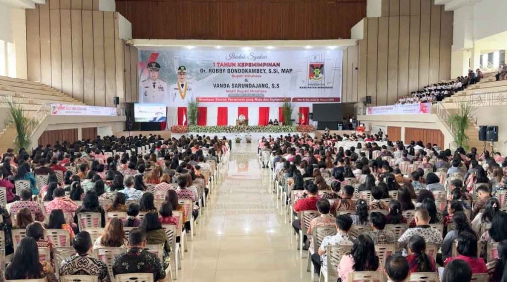 Tondano — Pemerintah Kabupaten Minahasa menggelar ibadah syukur 1 Tahun Kepemimpinan Bupati Minahasa Dr. Robby Dondokambey S.Si, MAP (RD) dan Wakil Bupati (Wabup) Minahasa Vanda Sarundajang S.S (Vasung), periode 2025-2030, bertempat di Gedung Wale Ne Tou, Tondano, Jumat (20/2/2026).