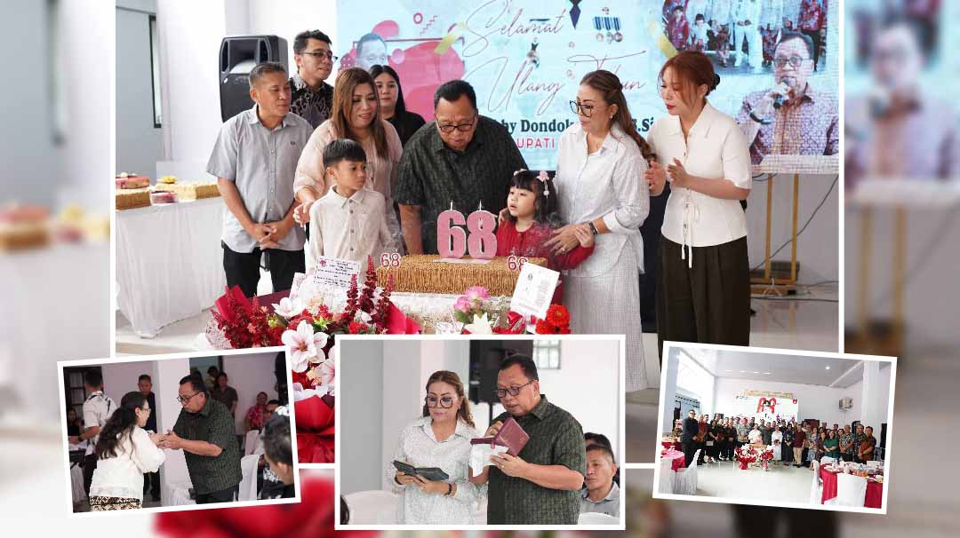 Dalam sambutannya, Bupati Robby Dondokambey menyampaikan puji dan syukur kepada Tuhan Yesus Kristus atas anugerah dan perlindungan-Nya hingga dapat menapaki usia ke-68 tahun.